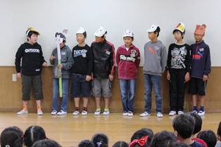 はじめに、児童からの出し物として、桃太郎の劇を行いました。
