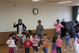 ホールではリズムに合わせて踊ったり走ったり!