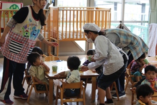 1番小さい子達のクラスはごはんの時間でした。