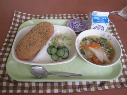 キャベツときゅうりのサラダ、ぶどうゼリー、牛乳