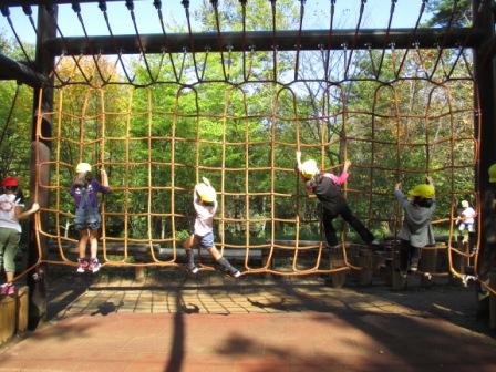森林公園では、アスレチックでたくさん遊びました。