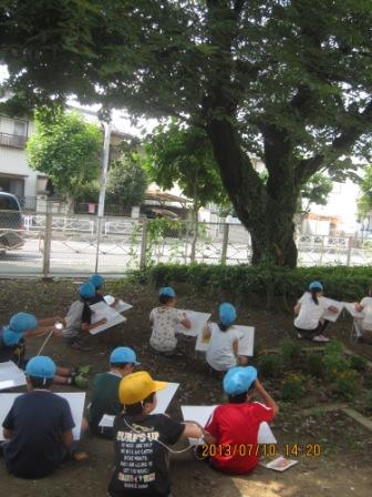 太くてずっしりとした幹、空に向かって伸びる枝、たくさんの葉を、よく見ながら丁寧に線描きをしました。