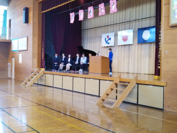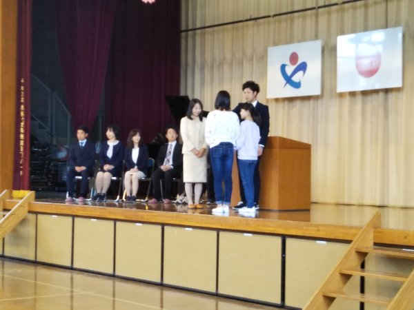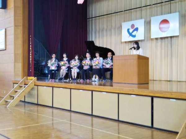 ★4月12日、昨年度末に本校を転出された先生方の離任式が行われました。久しぶりにお会いする先生方に体育館中、歓声がわき上がりました♪先生方からは、たくさんの思い出話とともに、「桜ヶ丘小のよさ(腰骨、あいさつ、読書など)をもっと伸ばしてください・・・」と、励ましの言葉をいただきました子供たちは、作文と花束のプレゼントと、校歌合唱で、お世話になった感謝の気持を伝えました♪