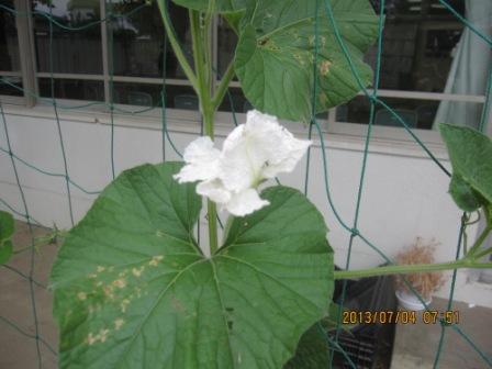 ひょうたんには、白い花が咲いていました。