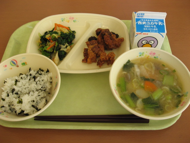 わかめごはん・豚肉の香味揚げ