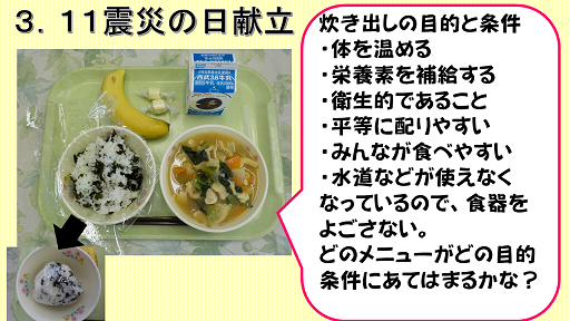また、栄養教諭より、歯ごたえを残す調理の工夫についてお話後、簡単調理では