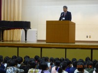 全校朝会の校長先生のお話は、11月の人権旬間をふまえて、「命の大切さについて」でした。