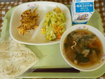 今日の給食は深谷ねぎをたっぷりつかった、ねぎまうどんです。