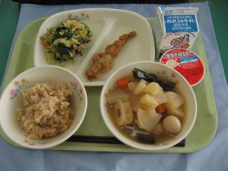 少し暖かい陽気になりましたが、給食は味のしみたおでんです。
