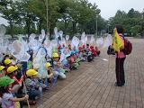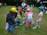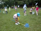 大きな虫取り網と虫かごを持って、 仙元山まで歩いて行きました。バッタやコオロギをつかまえられる子もいました。みんな一生懸命つかまえていました。友達と協力してつかまえる場面も見られました。