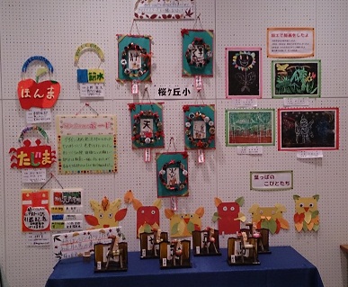 支援学校の児童生徒の作品が飾られた中、桜ヶ丘小学校のみんなの作品は