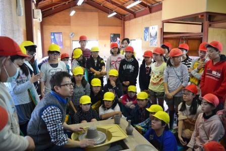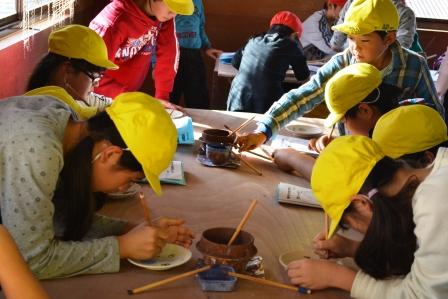 益子では、登り窯やろくろを回す作業を見せてもらいました。土の塊が、みるみる壺に変わっていくさまに、「おおお!」と歓声が上がりました。絵付け体験もさせてもらい、どの子も真剣に、お皿や湯のみに、思い思いの絵を描きあげました。焼きあがって届くのが楽しみです。