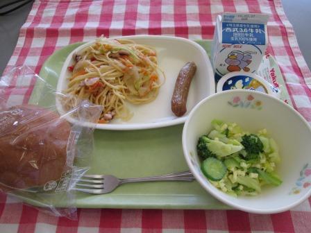 焼きウインナ、グリーンサラダ、すだちゼリー