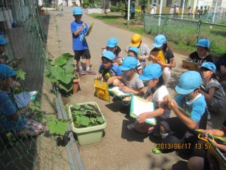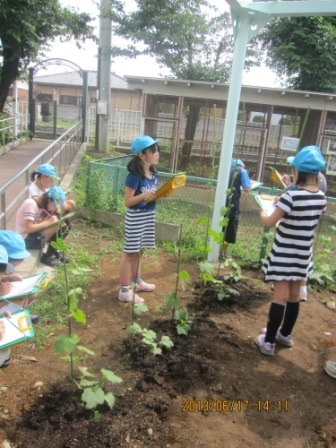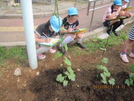 ツルの長さ、葉っぱの数や大きさを記録しました。