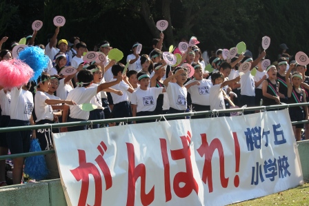 台風一過の快晴に恵まれ、深谷市内の小学校が一堂に集まり、精一杯闘いました。9月のはじめから毎日毎日練習を重ねてきた子どもたちです。力を尽くして闘う、優勝を目指して闘うけれど、この大会の目的は親善であることを忘れず、正々堂々と闘いました。相手の学校の健闘も称えたり、すれ違う他校の児童にも声をかけたりできました。友好的な態度で、礼儀正しく過ごしせていました。