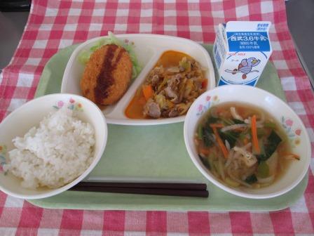 コロッケ、キャベツ、だいこんのみそ汁、牛乳