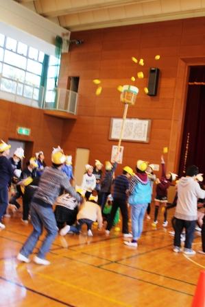 1組・2組は同点でしたが最後のじゃんけんで2組が準優勝で1組は3位です。大いに盛り上がった豆まき大会でした。卒業までの2ヶ月。追い出したい鬼を意識して、今回の大会がただのお楽しみに終わらないよう頑張らせたいです。