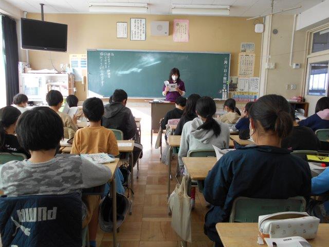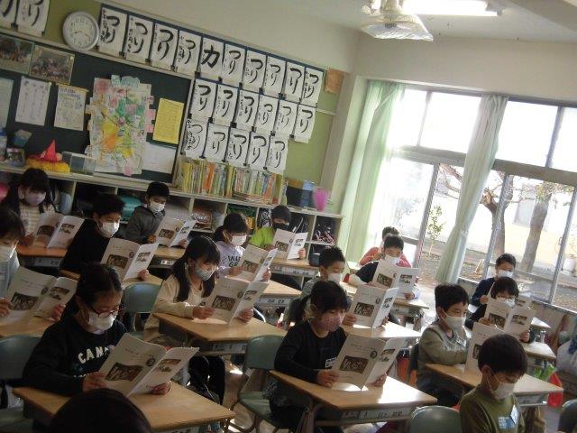 朝は、校長先生から「講話」をいただきました。栄一翁の成り立ちについて教えていただきました。その後、「朝読書」として「こころざし読本」を読みました。