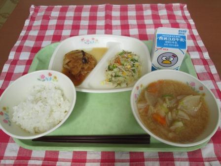ごはん、和風ハンバーグ、やさいいため