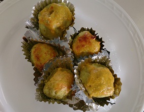 さつまいもを練って片栗粉と牛乳を混ぜておやき風に焼いた「ミルクやきもち」