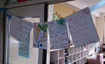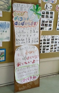 ダイコンの販売にあたり、みんなで看板を作りました。