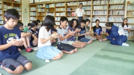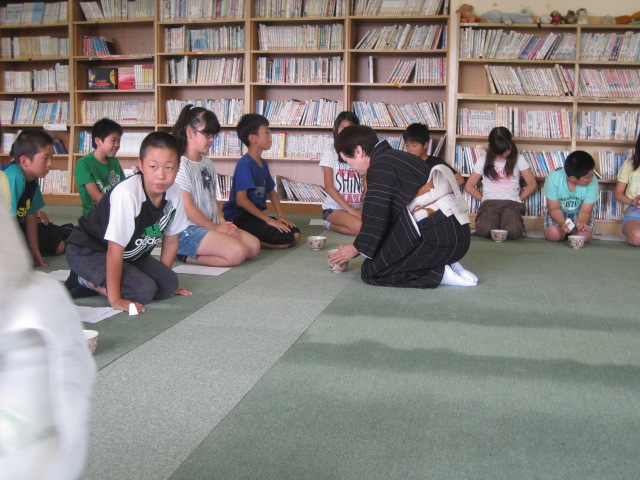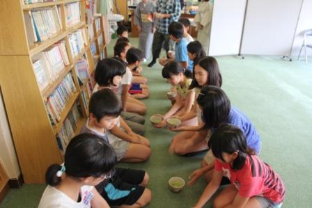 また、お茶の前にいただいたお菓子が、昔は薬としての役割をはたしていたという話を講師にしていただくと子ども達はそろって「へぇ~。」と、驚きの声をあげていました。