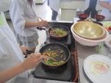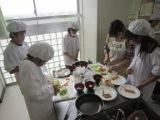 家庭科の調理実習では、野菜炒めとスクランブルエッグに挑戦しました。
