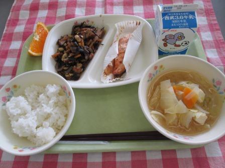 大豆の磯煮、キャベツのみそ汁 清見タンゴール