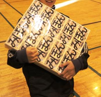 (見本の1億円を持たせてもらい、その重さに驚いていました。)