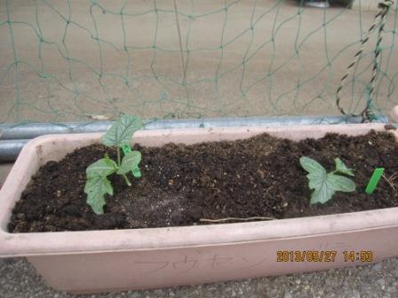 5月7日にまいた種が芽を出し、葉が3~4枚になりました。