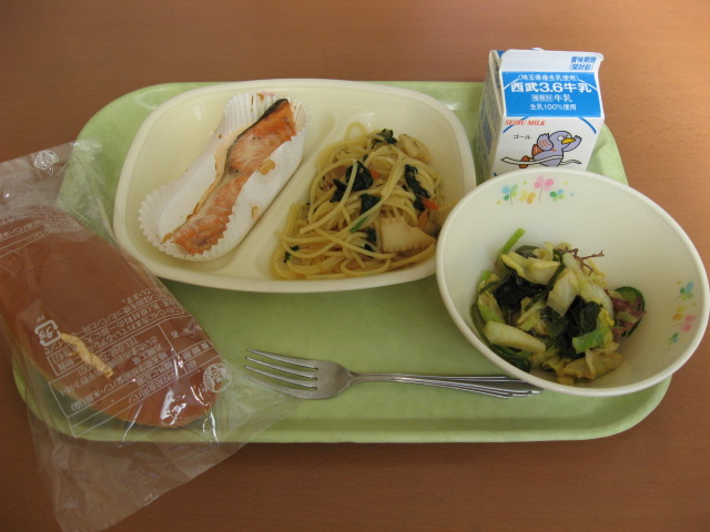 鮭の明太マヨネーズ焼き・海草サラダ・牛乳