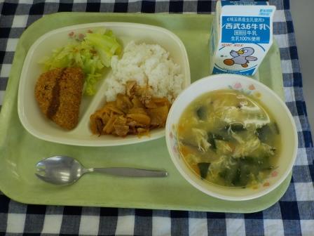 キムタクごはん、カボチャ挽肉フライ、キャベツ