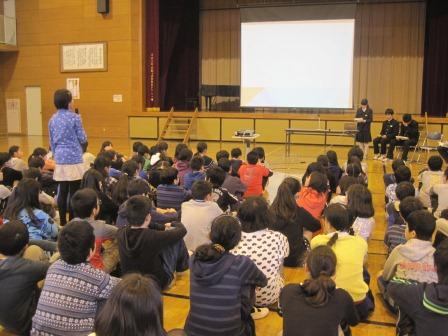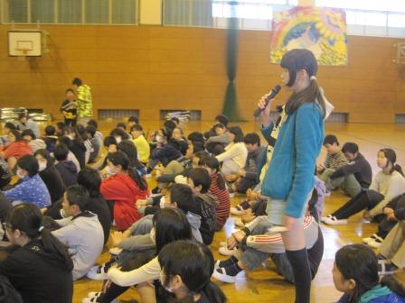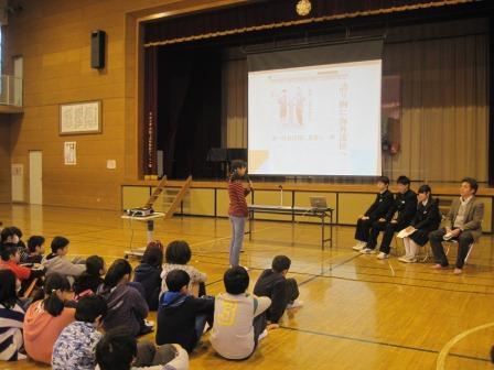 3月9日、南中の3年生が来て、6年生に対して中学校の説明をしてくれたり、事前にとった6年生の疑問に答えてくれたりしました。