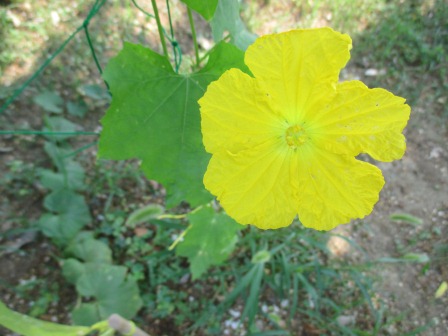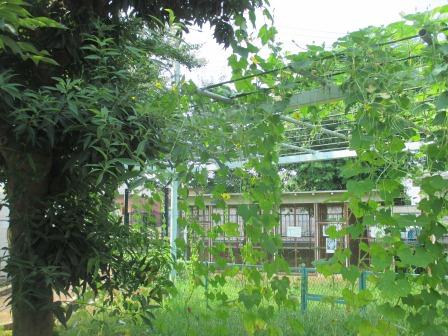 そんな中、一学期に種から育てて、みんなで植えたヘチマにかわいい花が咲きました♪