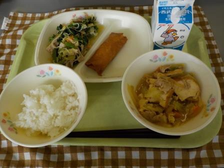 はるまき、深谷ねぎのナムル、牛乳